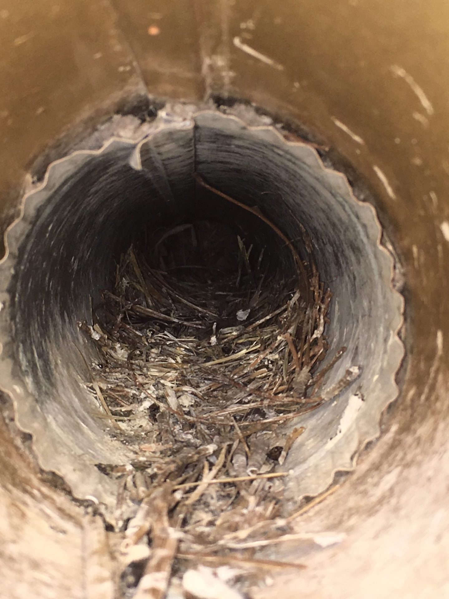 While we have intentionally set up a place to attract birds for our entertainment and relaxation, there are situations that our feathered friends create that are not conducive to the aforementioned activities. Have you walked your neighborhood recently? If you have, you may or may not have noticed that birds have made nests in the bathroom vents on the side of the homes and possibly under the soffit. Many times, they will have nested in the dryer vents. So, the next time you’re out, take a look! The most frequently asked question I get is, “how do they get in there?” The situations vary, the screens deteriorate and fall off, screens were never installed, or you will see the birds lift the flaps on the vent and make their way in. The culprit in my experience is usually the European/Common Starling https://www.audubon.org/field-guide/bird/european-starling. Once established they will continue to fill the vent with nesting material and have multiple broods. This prevents the moist bathroom air from being vented properly. They can also perforate the plastic vent line and get into your attic or between the floors of your home. They tend to leave a lot of droppings behind and many of them are infested with “mites.” Trust me, it’s not a pretty site when mites start pouring in through your bathroom vent.